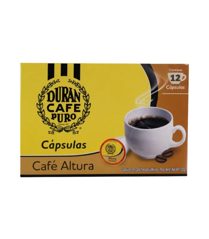 Indulge in the exceptional taste of Café Durán Altura Coffee Capsules 132g, crafted for coffee lovers who appreciate rich aroma and deep flavors. Sourced from high-altitude coffee farms, this blend offers a unique and authentic experience, delivering a smooth yet bold taste with every cup.